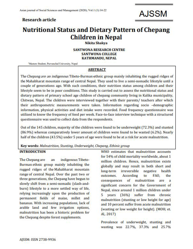 Nutritional Status and Dietary Pattern of Chepang Children in Nepal