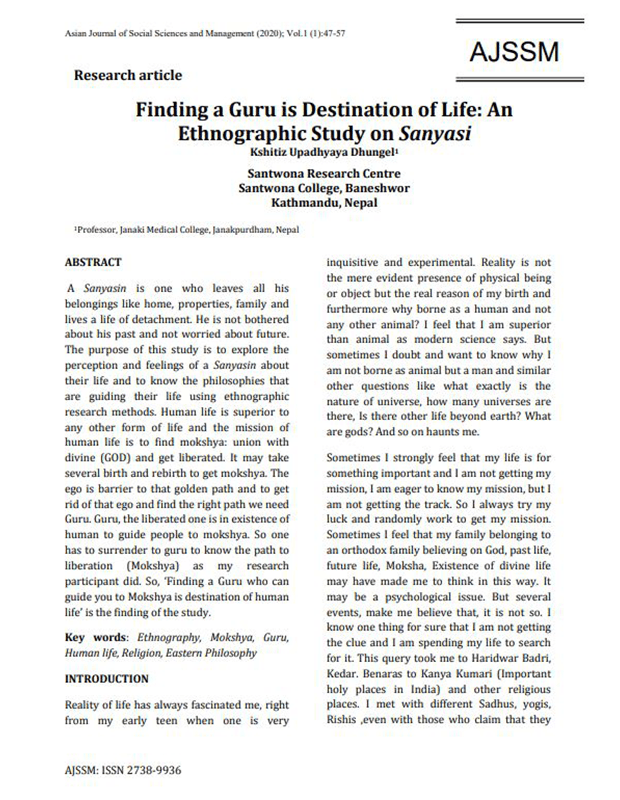 Finding a Guru is Destination of Life: An Ethnographic Study on Sanyasi