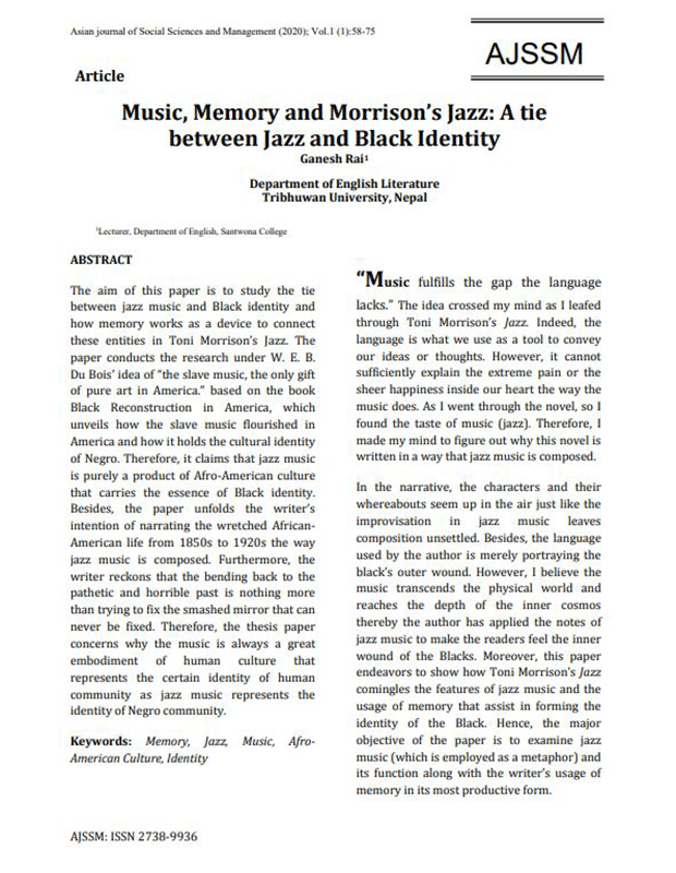 Music, Memory and Morrison’s Jazz: A tie between Jazz and Black Identity